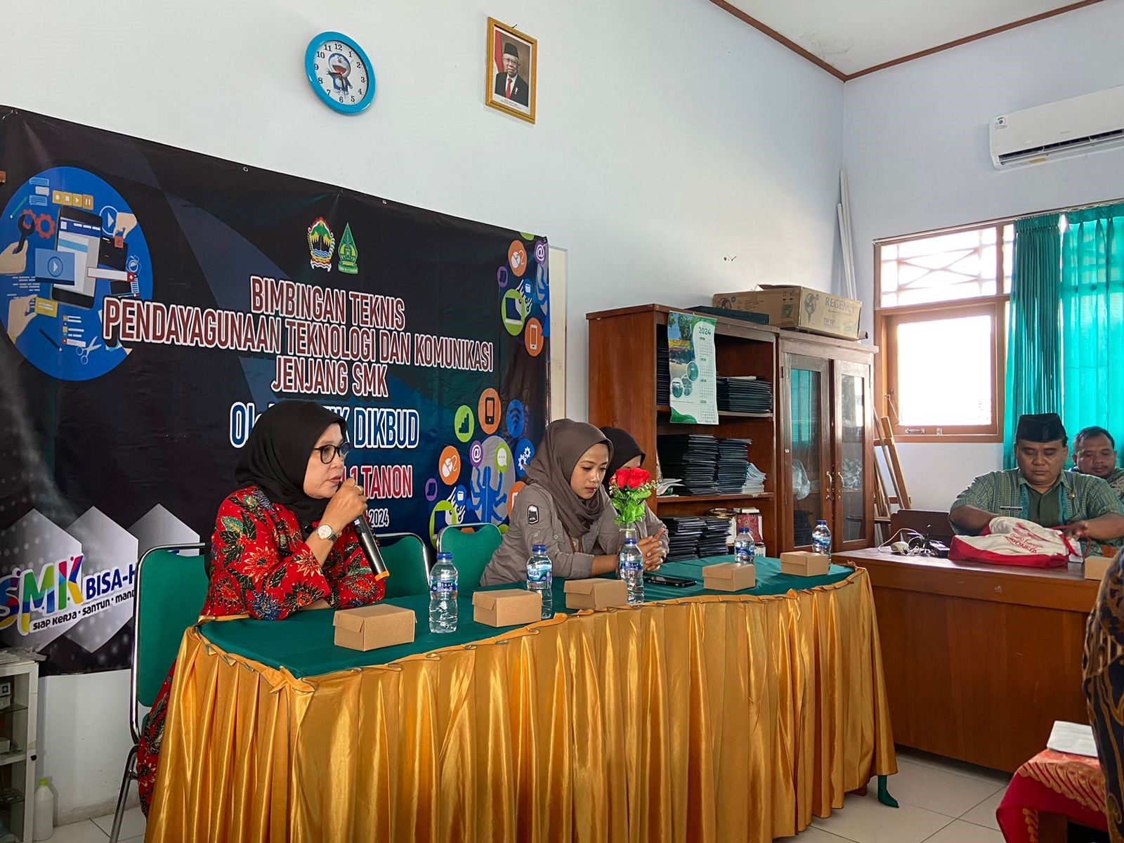 Acara bimbingan teknis dibuka pada hari Selasa, 21 Mei 2024, dengan sambutan hangat dari Bapak Drs. Heru Martani selaku Wakil Kepala Sekolah SMKN 1 Tanon Sragen. Dalam sambutannya, beliau menekankan pentingnya penguasaan teknologi dan komunikasi dalam dunia pendidikan saat ini.